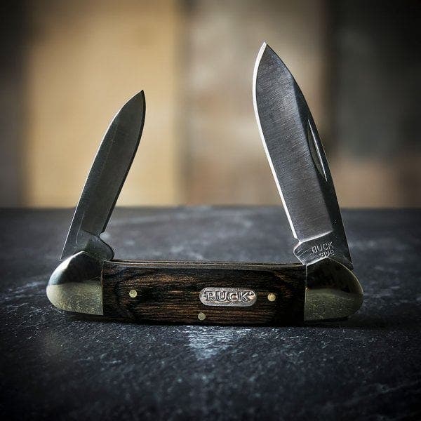The classic men's penknife, re-designed and developed for modern use by American knife experts, Buck. The 389 Canoe knife has a luxury wooden handle with two bolsters. This houses two 420HC stainless steel corrosion resistant knives, one piercing tip spear blade and a traditional all-purpose pen blade.