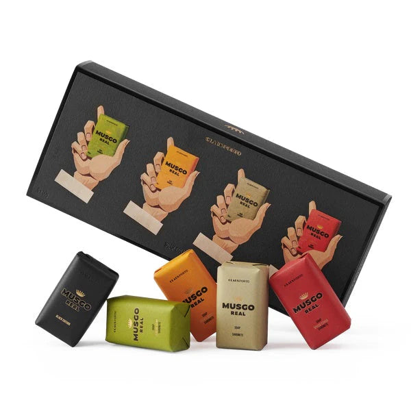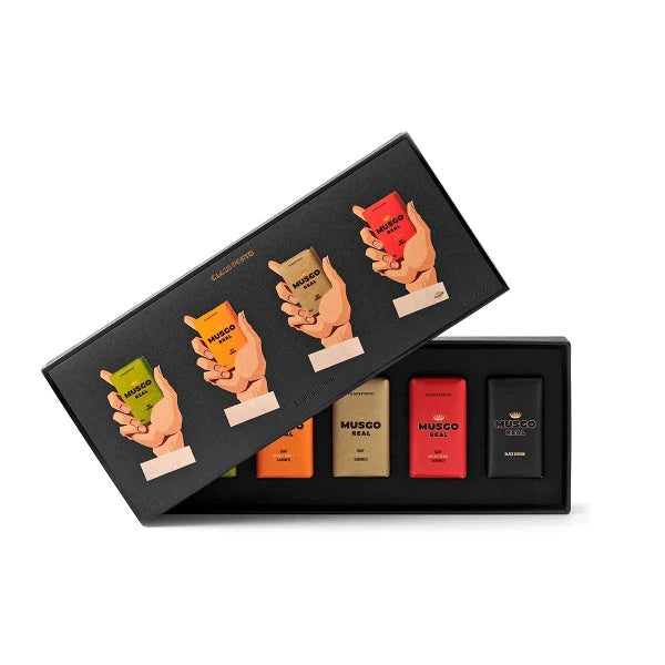 Introduce your senses to the luxurious world of Musgo Real with this Hands Up Mini Soap Gift Set. Experience the masculine scents of classic, oak moss, spiced citrus, orange amber, and black edition. Each bar of soap is delicately crafted to leave your hands feeling clean and refreshed. An elegant black box makes this the perfect gift for any soap lover or Musgo Real fanatic.